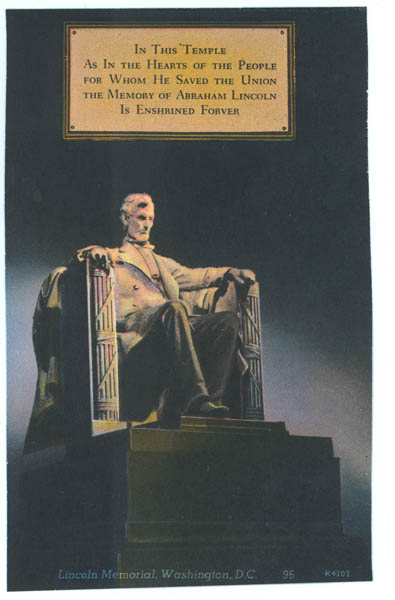 | Description: | In This Temple As In the Hearts of the People for Whome He Saved the Union the Memory of Abraham Lincoln Is Enshrined Forever |