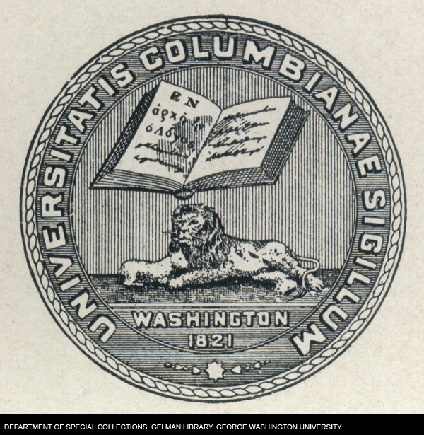 | Description: | An image of the Columbian University seal From the Cherry Tree (student yearbook) from 1904. |