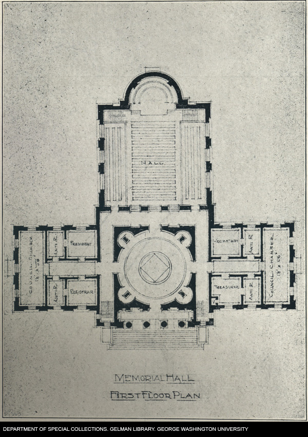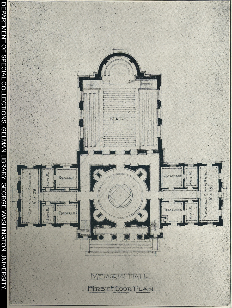 | Description: | The plan for the new Memorial Hall from the Cherry Tree, 1904. This was the location for the proposed George Washington Memorial Building to be built in cooperation with the George Washington Memorial Association. |