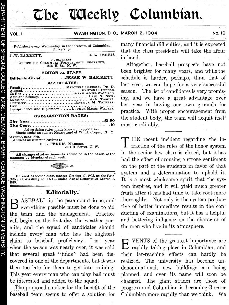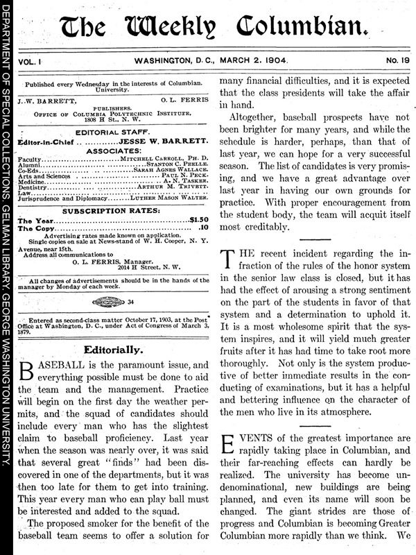 | Subjects: | Weekly Columbian;; Columbian University;; events;; new;; buildings;; |