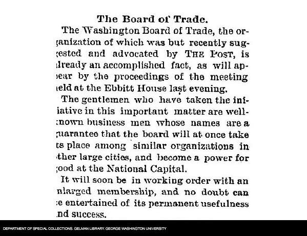 Subjects: Greater Washington Board of Trade;; Washington, D.C. Government;; Board of Trade for the District of Columbia;; 19th Century Washington, D.C.;; The Washington Post