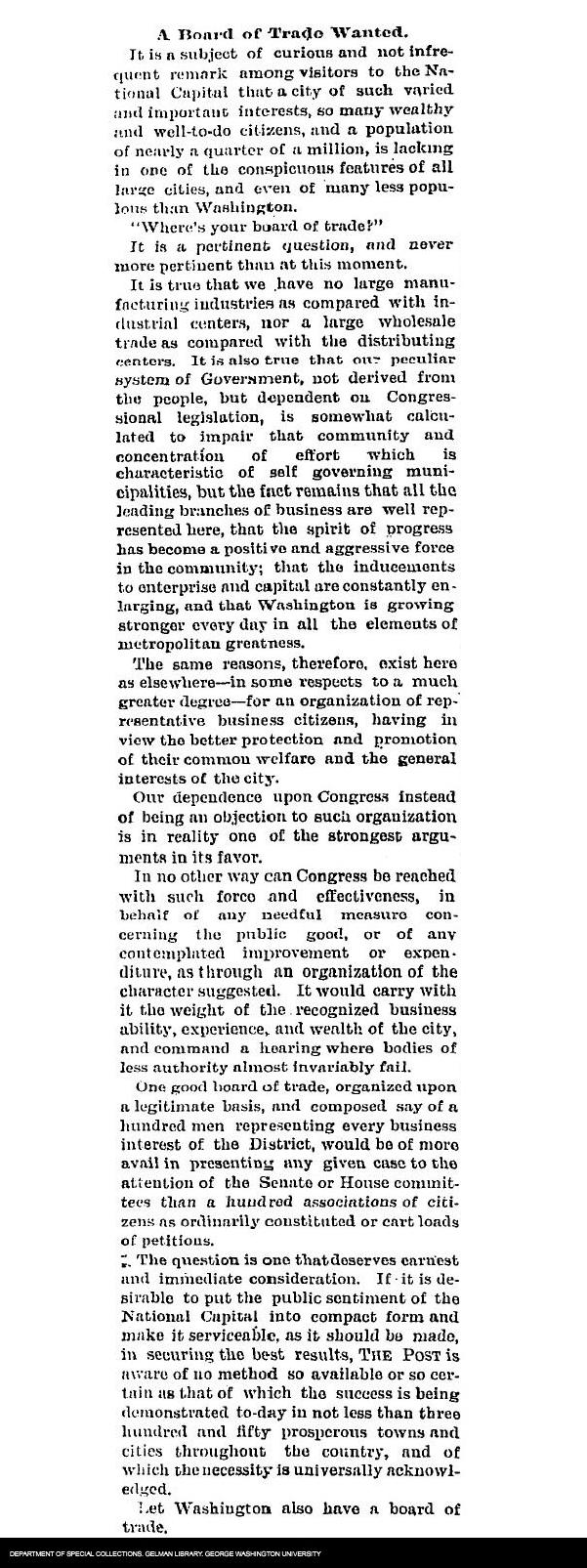 | Title: | The proposal and formation of the Washington Board of Trade |