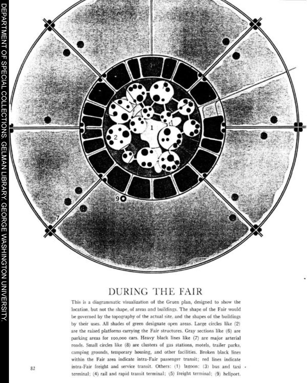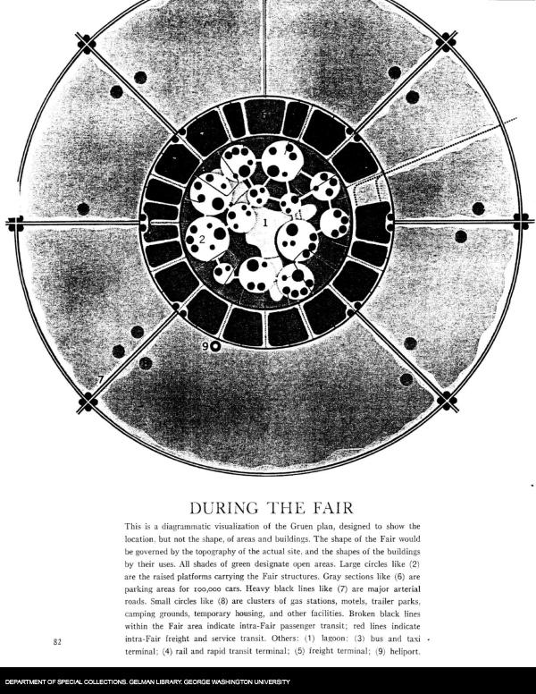 Description: From 1929 to 1965, the Washington Board of Trade devoted much effort into attempting to become a host for a World's Fair. Washington, D.C. never hosted a World's Fair as every bid to land the fair for the city came up short. This is an article from the now defunct "Horizon - A Magazine of the Arts" on the proposal prepared by the Washington Board of Trade and presented to the three-man President's Commission charged with determining if and where the United States should have a World's Fair in 1964. The Board contracted renown architect and urban planner Victor Gruen to prepare a study on the proposed site. This article details the groundbreaking Gruen proposal.