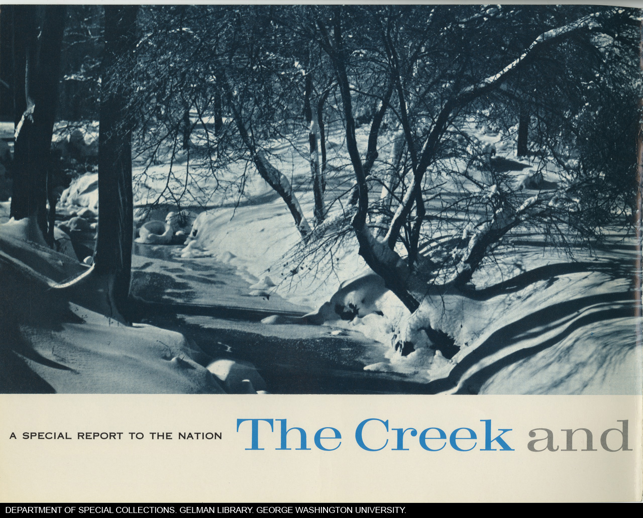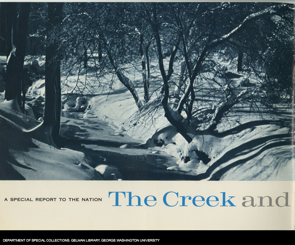 | Description: | This 1967 pamphlet serves to document concerns about the degrading health and increasing pollution plaguing Rock Creek Park. It was created by the U.S. Department of the Interior in order to spread the message about the hazards a growing city can pose to the surrounding environment. The pamphlet contains numerous photographs displaying the traumatic effect Washington, D.C. has had on one of the few remaining oases in the capital area. The greater importance of this document to Washington, D.C. history lies in its documenting the effort to maintain the elegance of the capital city. Additionally, The Creek and the City displays the conflict between man and nature which frequently is a subject of debate in the political institutions of the United States. |