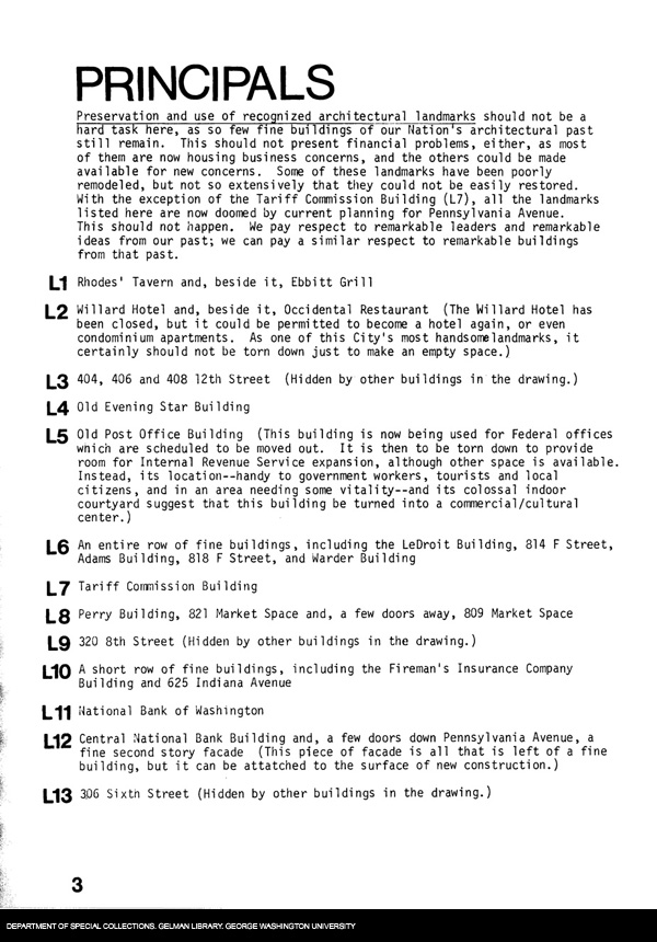 Subjects: Pennsylvania Avenue;; Jackson, Henry M.;; Mathias, Charles McC.;; Randolph, Jennings;; Gravel, Mike;; Aspinall, Wayne N.;; Gude, Gilbert;; Broyhill, Joel T.;;Wiebenson, John;;For Arts in the Community Environment;; America the Beautiful Fund;; Rhodes Tavern;; Willard Hotel;; Occidental Restaurant;; Old Evening Star Building;; Old Post Office
