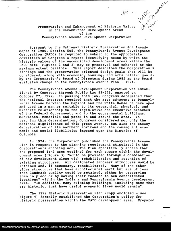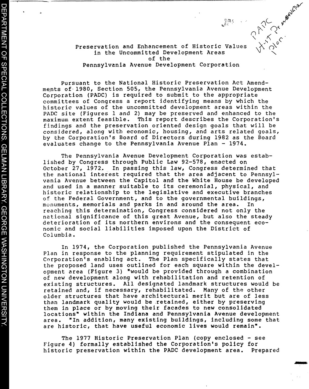 | Title: | Pennsylvania Avenue Development Corporation Historic Preservation Plan |