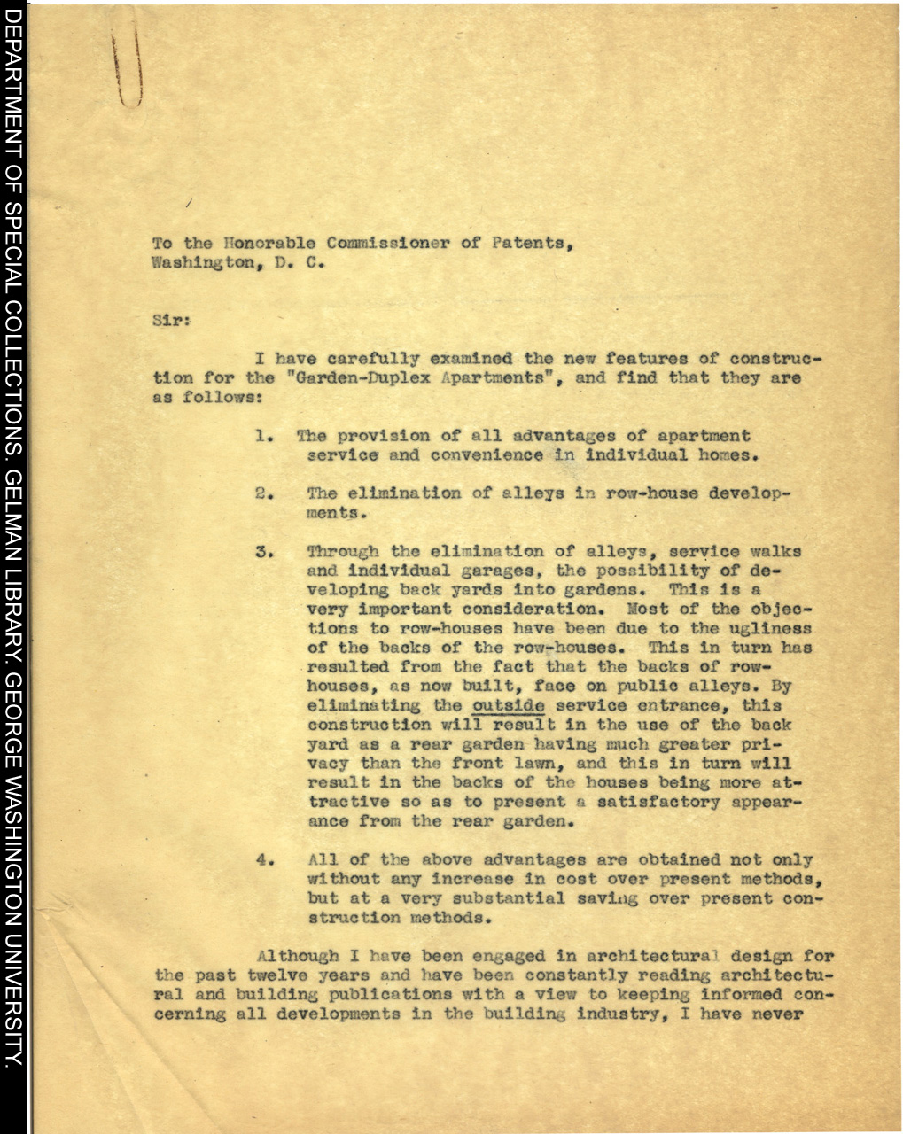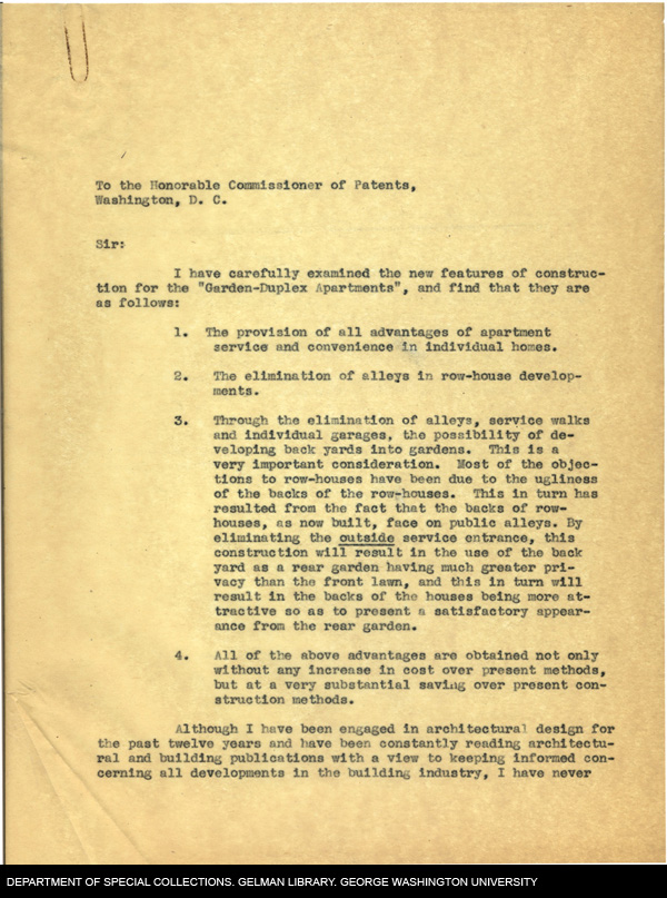| Subjects: | Commissioner of Patents;; Patent;; Justement, Louis, 1891-1968;; Apartment Houses;; United States Patent Office |