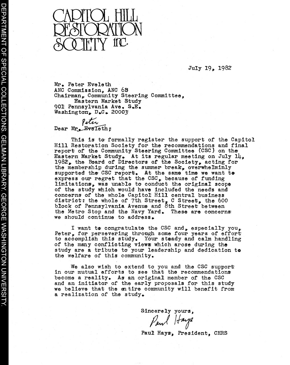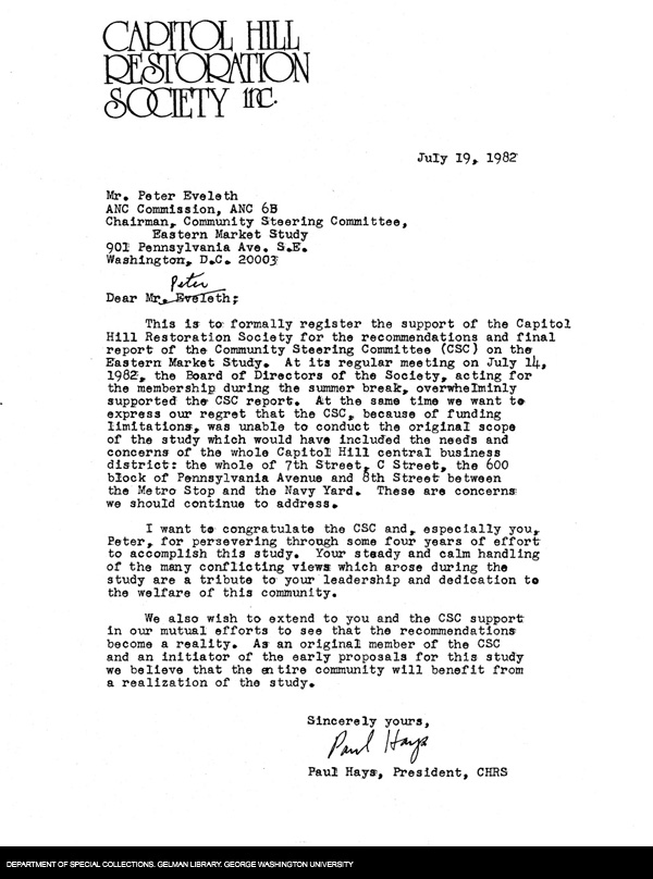 | Title: | Letter from the Capitol Hill Restoration Society |