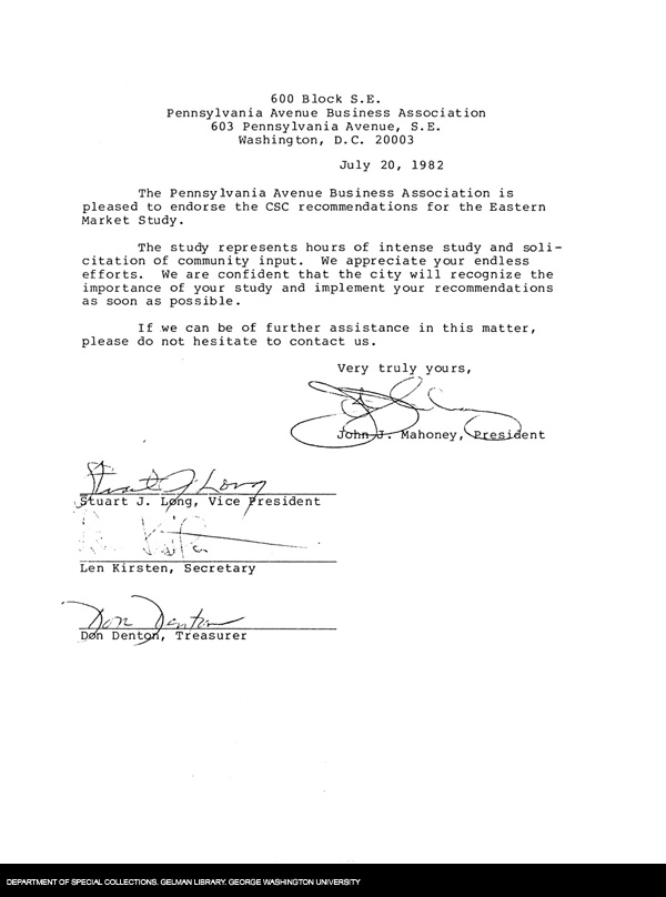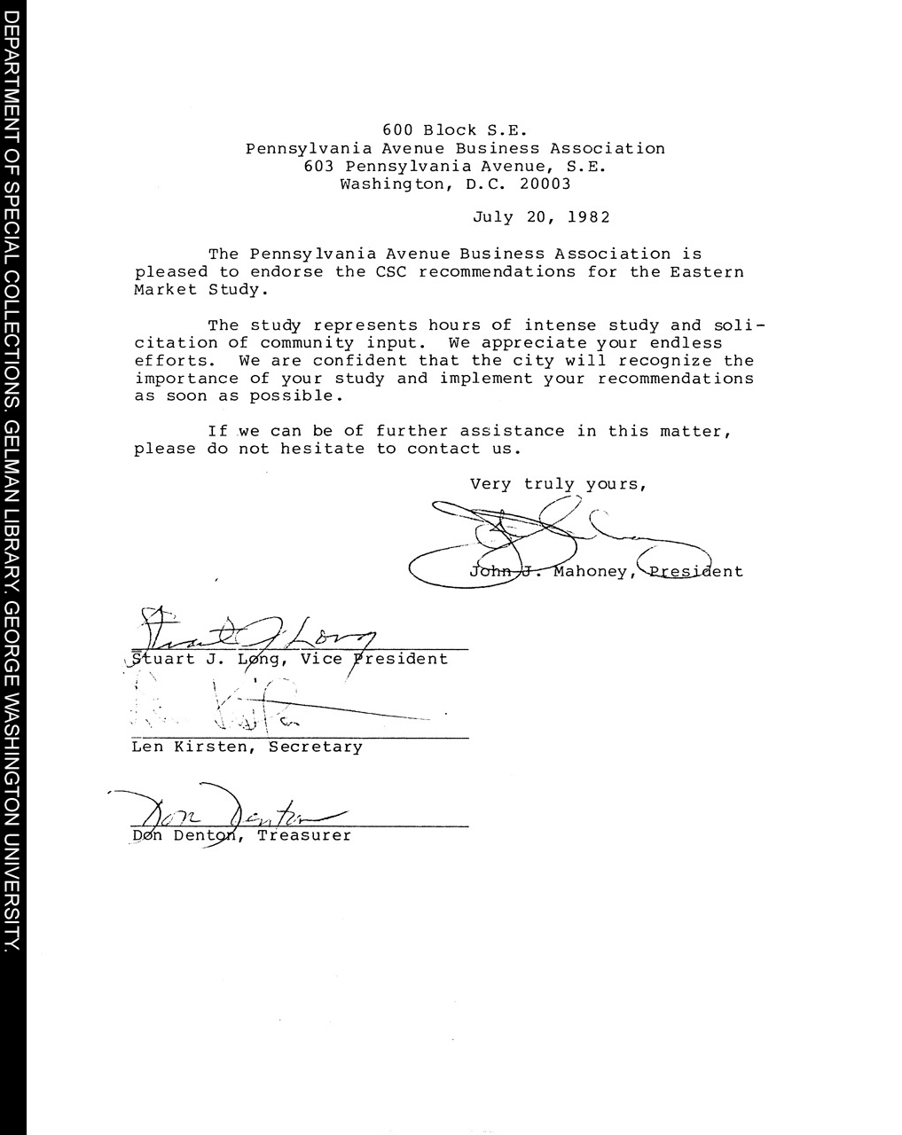 | Title: | Letter from the Pennsylvania Avenue Business Association |