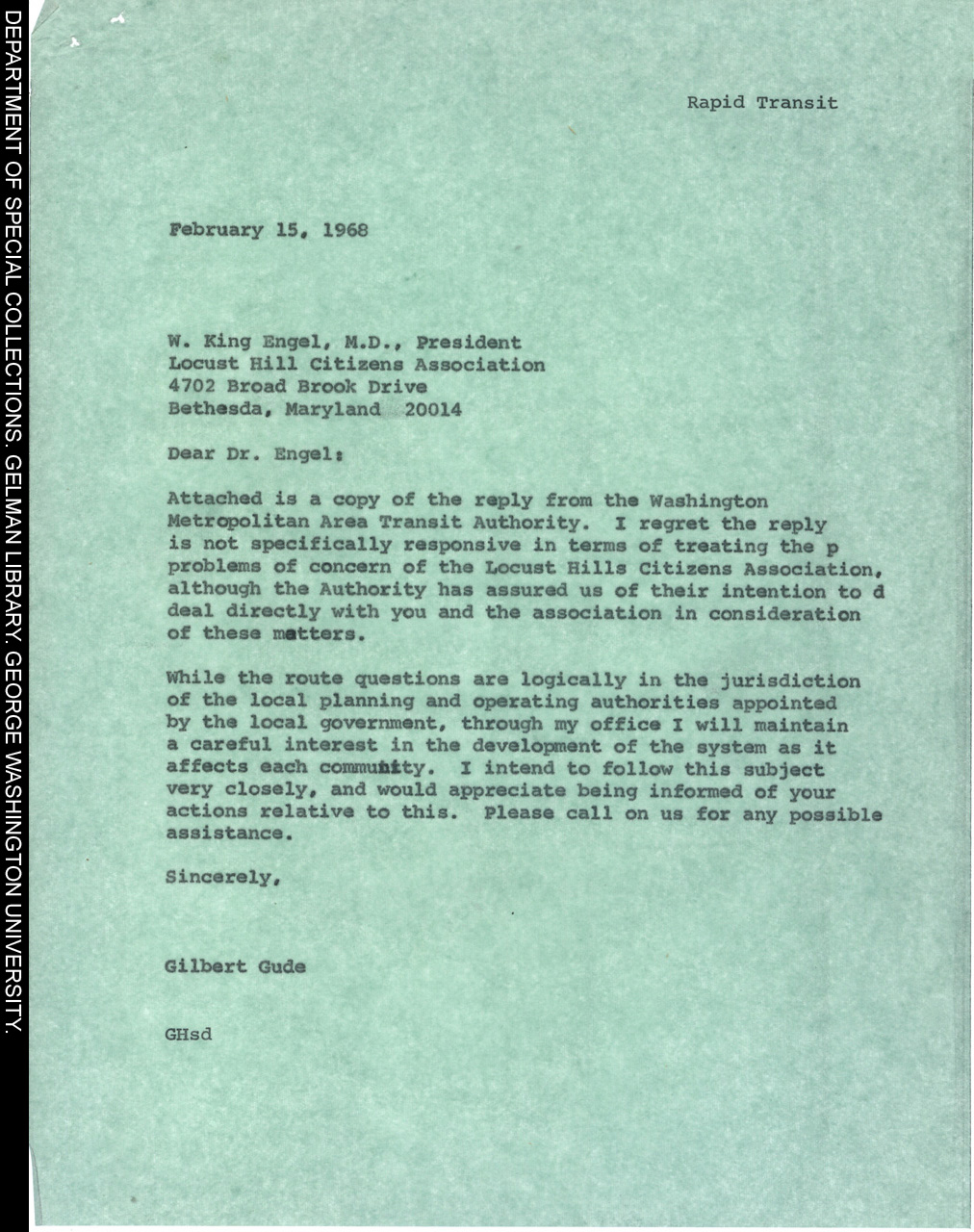 | Title: | Gilbert Gude Letter to King Engle |