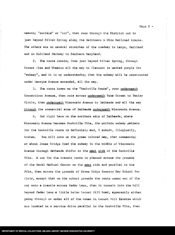| Description: | Albert Conradis, of the Locust Hill Estates Citizens' Association of Montgomery County, made this statement at the WMATA hearings in Rockville, February 1, 1968, and sent a copy to Congressman Gilbert Gude. It is about concerns regarding the planned Metro construction and its effects on his residential neighborhood. See also the Conradis Letter to Gude, the Conradis Photos, the Gude letter to Conradis, and the Engle Letter and Statement referred to in this letter. |