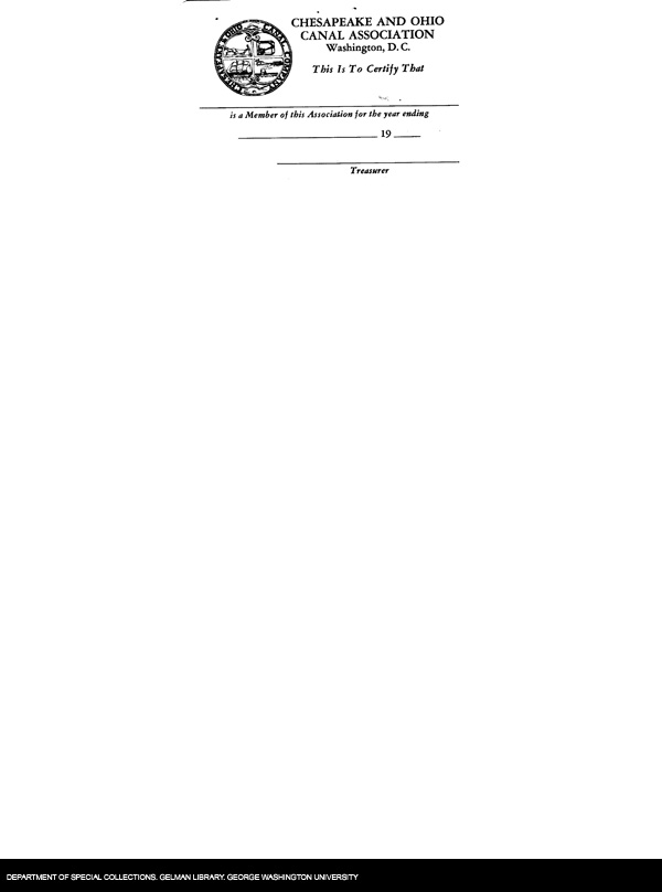 | Subjects: | Chesapeake & Ohio Canal Association;;C & O Canal (Md. and Washington, D.C.);; Membership Card |