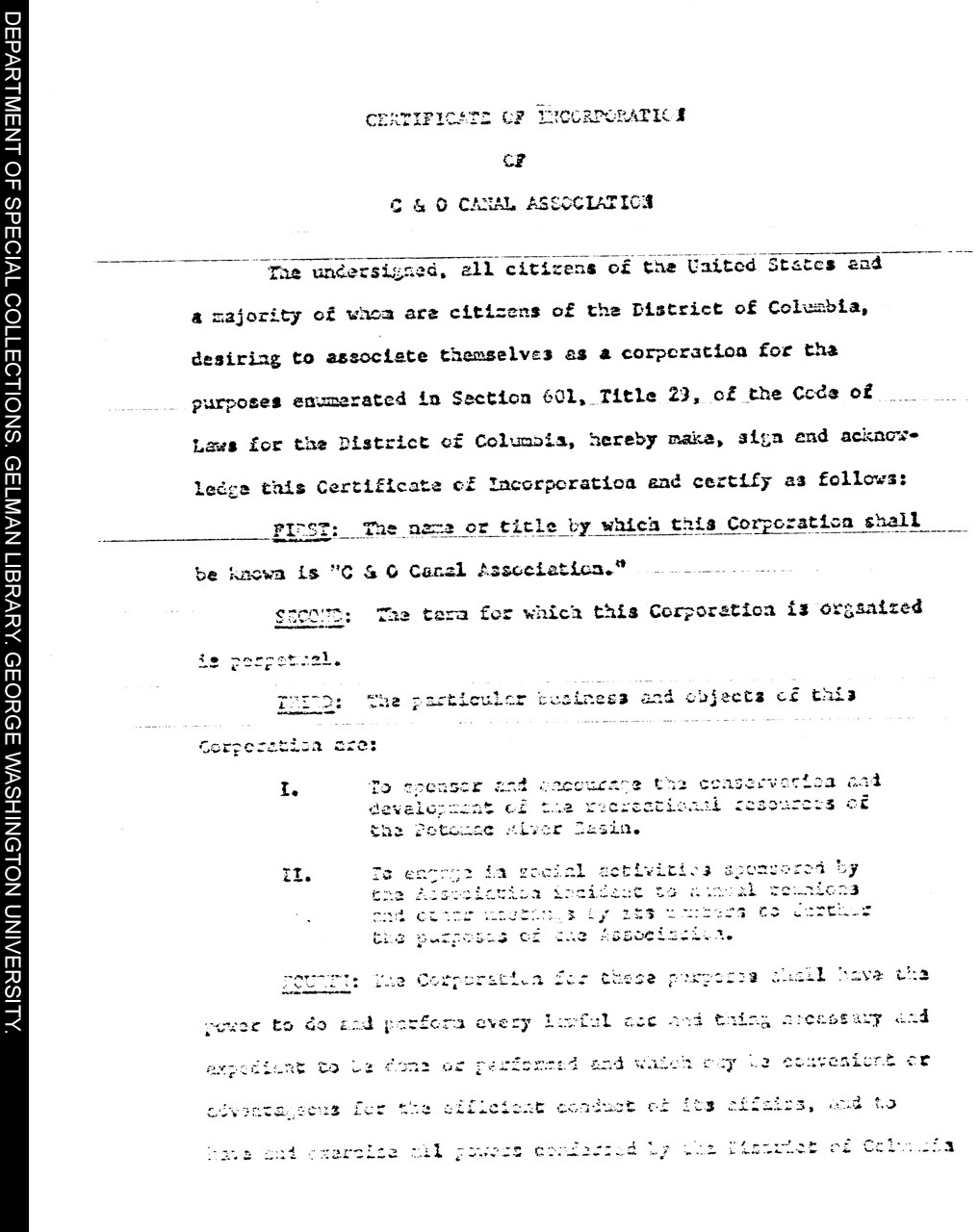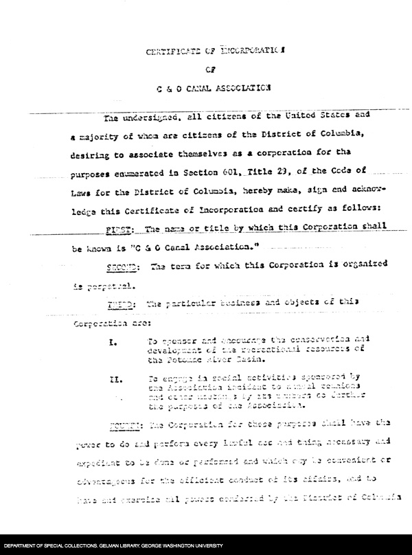 | Title: | C & O Canal Association Certificate of Incorporation |