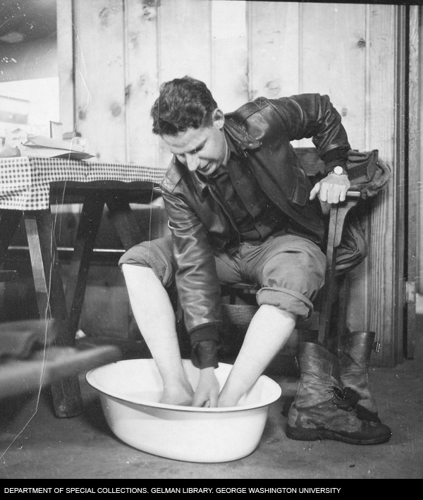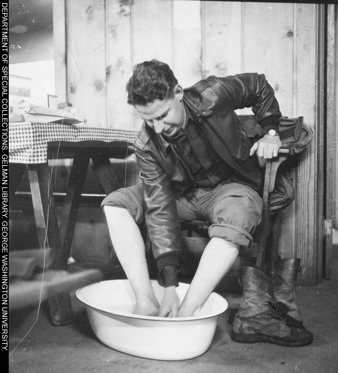 | Description: | A photo of a tired hiker soaking his feet on the original C & O Canal Heritage Hike in 1954. |