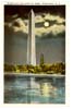 | Washington Monument by Night, Washington, D. C. (no date) A remarkable view of the Washington Monument as a powerful searchlight played about the top of the shaft and the reflection was perfect in the Lincoln Memorial Pool. At the left of the monument the snow white dome of the Capitol reflected itself in the water, making a perfect picture. | |