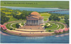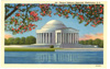 | Thomas Jefferson Memorial, Showing Washington Monument, Washington, D. C. (no date) The Thomas Jefferson Memorial is located on the Tidal Basin in West Potomac Park. It is constructed of Danby Vermont Marble for the exterior and Georgia white marble for its interior. This Historic Shrine with its setting of Cherry Blossoms is one of the most beautiful sights in Springtime, and is visted by thousands each year. | |